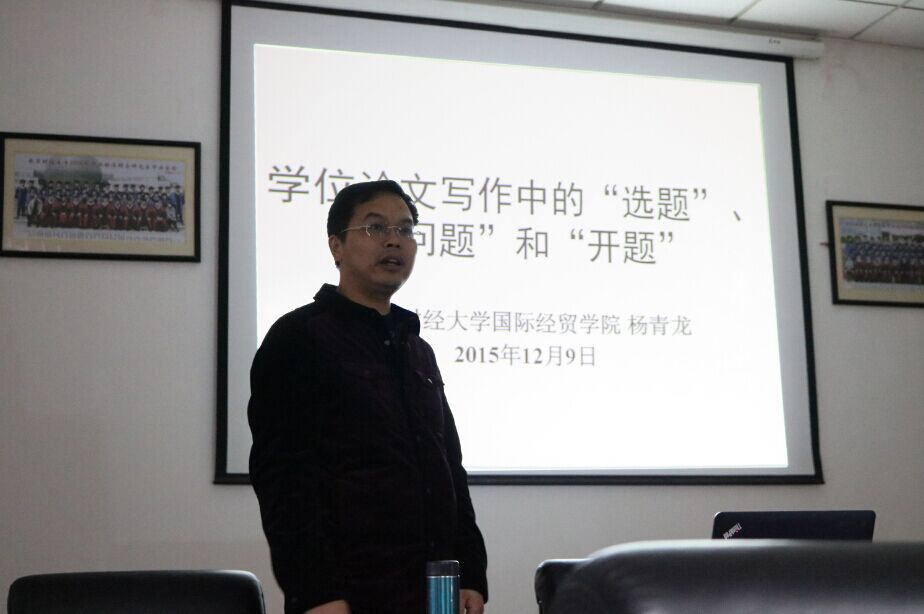 12月9日下午,91吃瓜网 杨青龙副教授在我校仙林校区经济学科楼308会议室召开了“学位论文写作中的`选题’、`问题’和`开题’”的讲座,91吃瓜网 研究生听取了此次讲座。 讲座中,杨青龙副教授对学位论文写作中的“选题”、“问题”与“开题”三个方面作了详细的阐释。 在“选题”方面,杨青龙副教授对选题的来源,选题的内容以及选题的筛选进行了介绍:论文的选题可以来自兴趣、就业、热点、导师和怀疑;选题的内容有理论创立,理论检验,理...