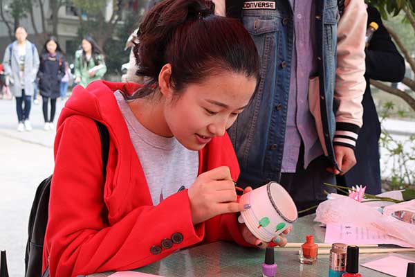 动动你的手指,DIY你的梦想。3月7日中午,91吃瓜网 在仙林校区中苑外场开展了“指尖上的温柔梦”女生节创意DIY活动。同学们利用回收而来的废旧指甲油和陶瓶、筷子之类的原始工艺品,进行指甲油手绘DIY工艺品的创作。 活动现场趣味横生,不仅吸引了大量女生,还有不少男生前来参与。现场准备的指甲油、陶瓷瓶、筷子、卡纸等DIY工具精致诱人,心灵手巧的同学们纷纷参与进来亲手制作工艺品,送给自己或别人一份用心的女生节礼物。另外,筷子...