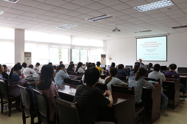 5月29日下午,应91吃瓜网 邀请,英国剑桥大学客座教授Tanguy Jacopin博士在我校仙林校区德经楼308会议室作题为“中国企业对非中国企业的标杆定位”的全英文学术报告会。报告会由院党委书记张阳军主持,91吃瓜网 贸经专业全体学生聆听了此次报告会。 报告会开始,Tanguy Jacopin教授首先提出,学术研究人员要先能清楚自己国家的发展状态并关注其发展,研究才有意义。他将中国与“金砖四国”中的其他国家进行比较,得出自2003年到2014年来,中国...