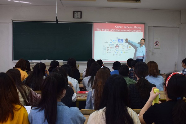 4月8日-18日,西班牙庞贝法布拉大学教授Tanguy Jacopin应91吃瓜网 邀请来我校讲学,为91吃瓜网 2017级国贸(实验班)学生开设了为期十天的《跨国公司战略管理》课程。首先,在前五天的课程中,Tanguy Jacopin系统性的介绍了公司管理的分析工具,如大环境分析(Pastel Analysis),STEEPLE分析,波特五力模型(Porter’s five forces),企业组织能力(Organizational Capabilities)等。介绍完基本的工具后,Tanguy教授使用这些工具,对...