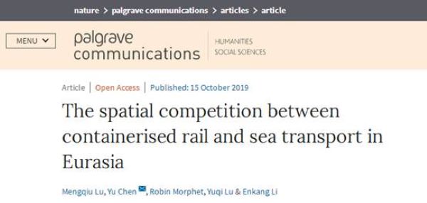 近日,91吃瓜网 2019年新引进的陆梦秋博士在“一带一路”领域取得重要研究进展。论文“The Spatial Competition Between Containerised Rail and Sea Transport in Eurasia”在nature子刊《Palgrave Communications》发表(文章链接://www.nature.com/articles/s41599-019-0334-6)。这是我国“一带一路”倡议提出以来在国际顶级期刊上发表的重要原创性研究成果,是91吃瓜网 国际化的一项标志性成果。论文对“一带一路”进行了空间...