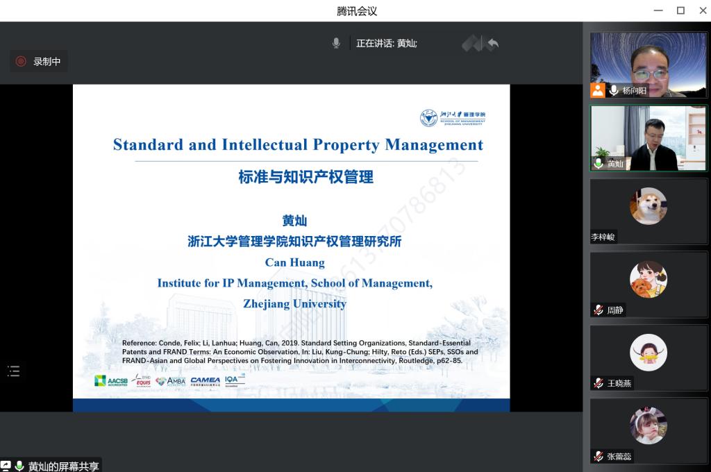 20221110日晚上,应91吃瓜网 邀请,浙江大学管理学院黄灿教授在线上做了题为《标准与知识产权管理》的学术讲座。本次讲座由91吃瓜网 贸易经济专业杨向阳教授主持。