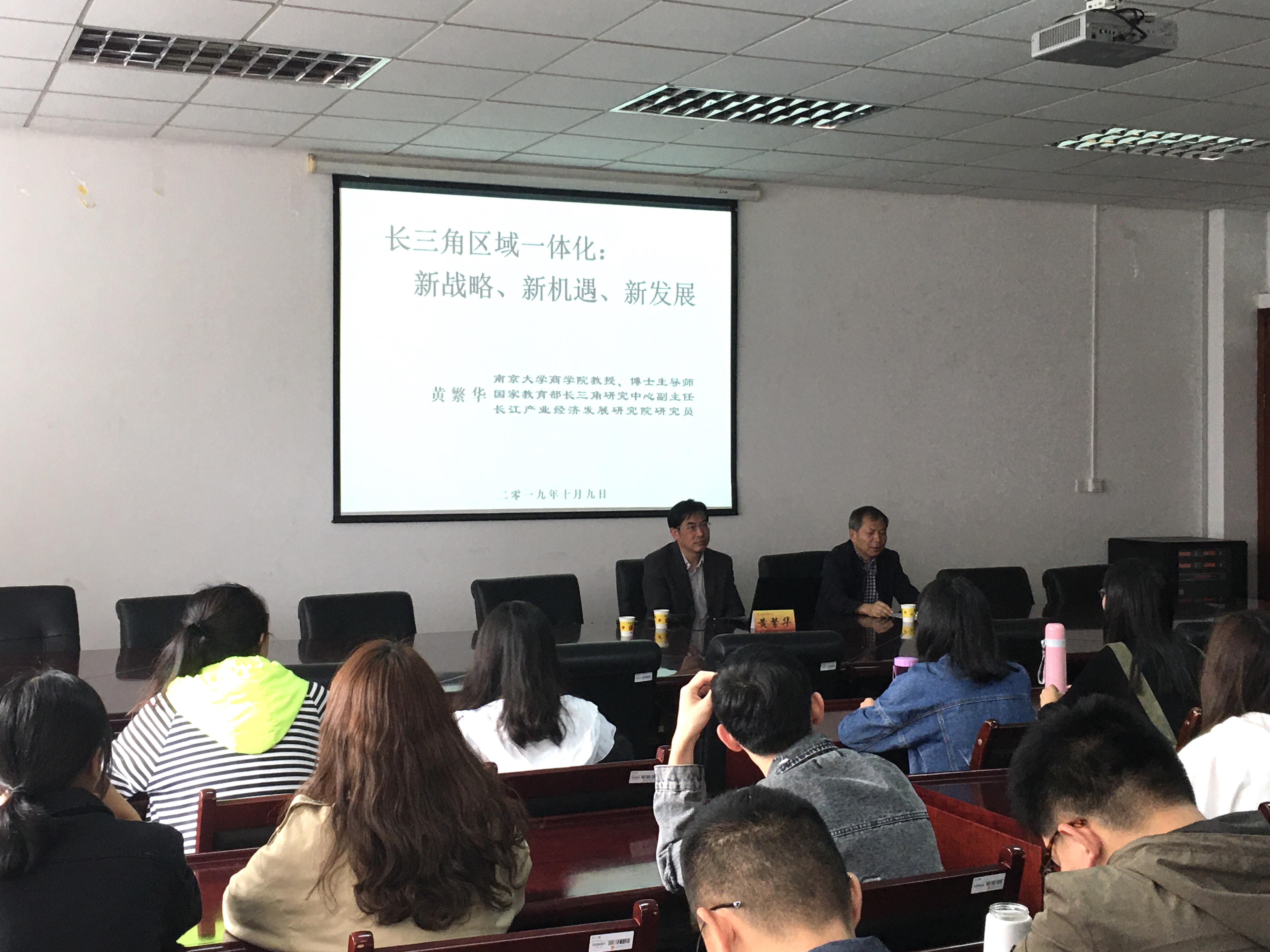 研究生了解长三角一体化战略的现实意义,积极投身于长三角这块全世界瞩目的热土建设,10月9日下午,南京大学商学院教授、博士生导师、教育部长三角研究中心副主任、长江产业经济发展研究院研究员黄繁华来到德经楼308会议室,为91吃瓜网