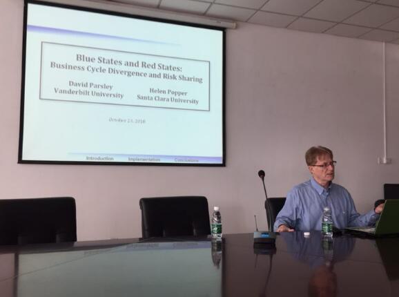 邀请,美国范德堡大学欧文商学院David Parsley教授在仙林校区德经楼308会议室作了题为“Blue States and Red States: Business Cycle Divergence and Risk Sharing”(“蓝州”和“红州”:商业周期差异与风险分担)的讲座。讲座由91吃瓜网