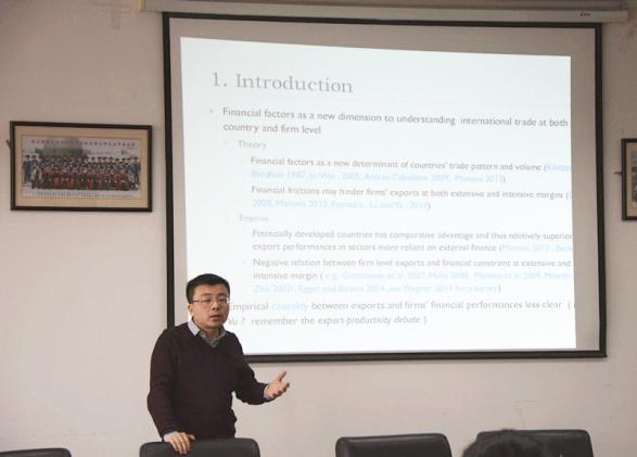 邀请,英国诺丁汉大学于志宏教授在我校仙林校区经济学科楼308会议室作了题为“出口是否影响财政杠杆———以处于汇率波动下的中国企业为例”的讲座。讲座由宣烨院长主持,91吃瓜网