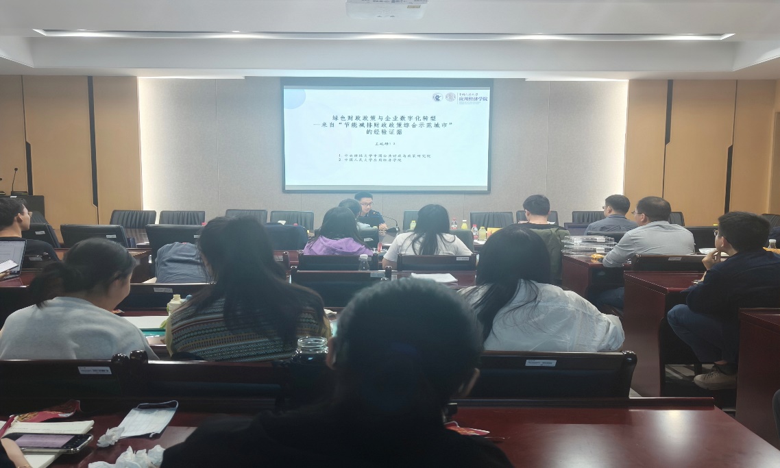 在文章中,陶云清博士将智能制造的实施视为一次准自然实验,利用工业和信息部发布的《工业和信息化部关于公布智能制造试点示范项目名单的通告》,采用交叠DID方法探究该次政策试点对企业产能利用率的影响及其作用机制。最后得出结论:智能制造能够通过促进企业人力资本升级进而提升其劳动收入份额;智能制造对企业劳动收入份额的提升作用在劳动密集型企业、法制水平比较完整以及劳动力错配成都较低地区的企业中更为明显;并且通过进一步的研究发现,相比于协同型智能制造模式,生产型智能制造模式对企业劳动收入份额的提升作用更强.汇报完毕后,现场进行激烈的探究与讨论。我校王书斌老师、张少辉老师进行点评并给出宝贵的意见。