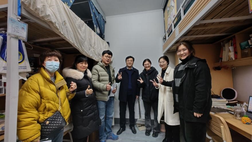 最近气温骤降,又逢考试周,学工队伍老师进入宿舍后,认真查看了学生们的住宿环境,叮嘱同学们平时要注意宿舍卫生和个人卫生,注意用电安全和宿舍通风,并要求同学们养成良好的生活习惯。 此外,老师们与同学们深入交流,询问了在日常学习中遇到的困点、难点、堵点,鼓励同学们走出宿舍拓展视野,不负青春,不负韶华,综合发展个人素质,培养良好的人际关系,与舍友和谐共处,团结互助,共同进步。临行前,老师们叮嘱同学们注意保暖,劳逸结合,有困难多与辅导员沟通联系,学校将会积极加以解决。