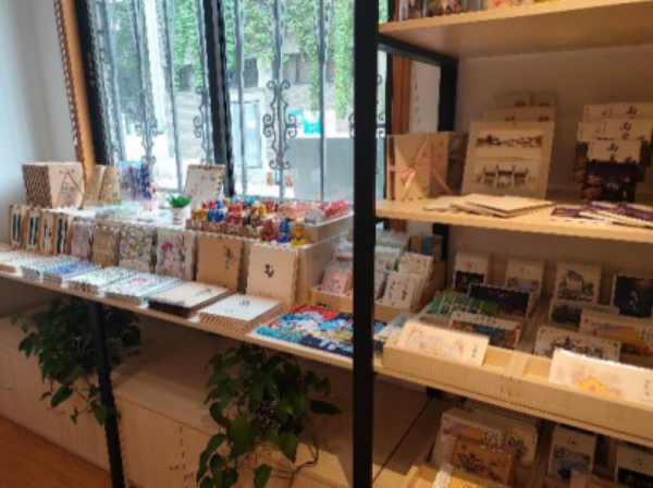 小队成员线下也走访了上海中共一大会址的“熙源书店”和南京文博梅园纪念馆,两地文创风格截然不同。前者主要采用的是复古风,将历史年代的红色元素直接体现在系列产品中,比较古朴怀旧,受众主要是有红色文化情怀的中老年游客;后者更贴近现代生活的设计审美,产品设计新颖简洁,将红色元素化为q版的卡通形象,深受前来做社会实践活动的小学生家长的喜爱。