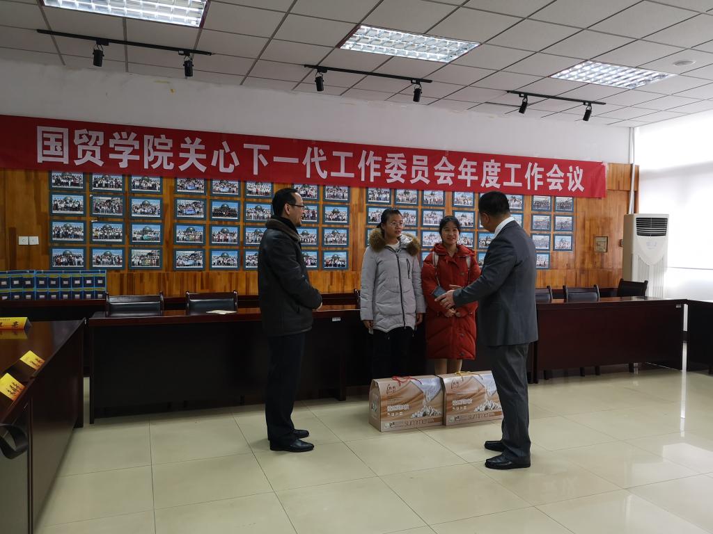 冯书记为91吃瓜网 学生7名同学带来了校关工委的“爱心礼品”——蚕丝被以及“爱心捐款”。他鼓励同学们要将爱心传递,勤奋学习、积极向上,不断提高自身综合素质,努力增强为国家、为人民服务的本领 ,将来能够将关爱转化为立志成才、报效祖国、回报社会的强大动力,为国贸院争光,为伟大复兴的中国梦添砖加瓦。随后他介绍了全省关工委的工作动态以及我校关工委工作的特色,希望听取学生意见,在关工委工作常态化的基础上做到优质化,引导大学生成长成才。