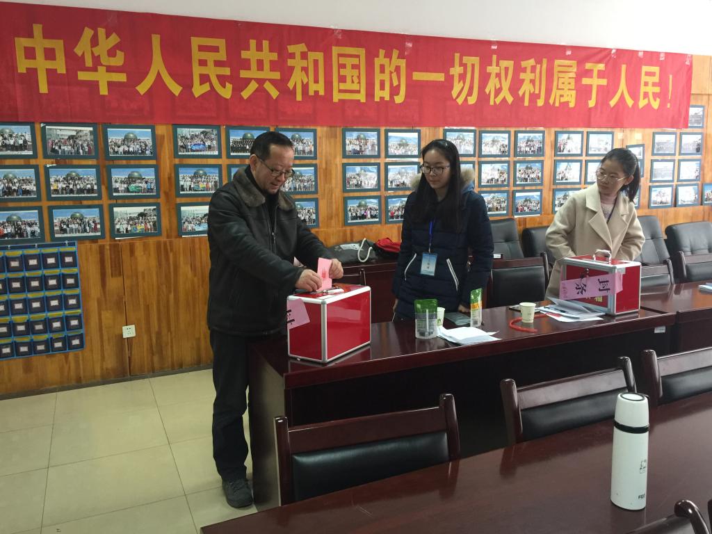 在308会议室进行了补选栖霞区人大代表投票工作,党委书记张阳军,院长宣烨以及全院师生参与了此次投票。