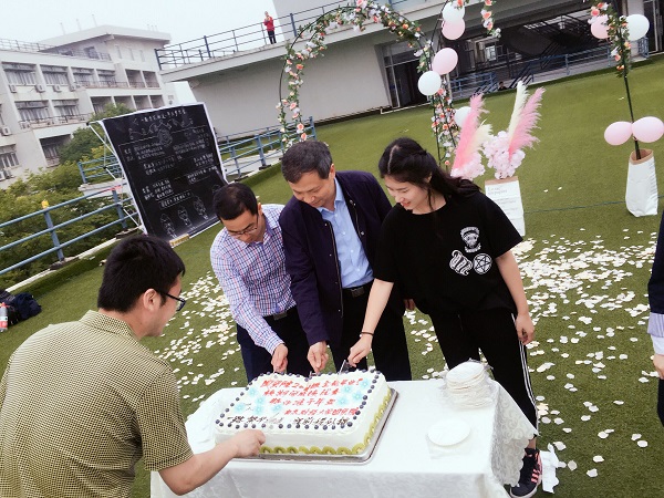(宣烨院长,余永泽、杨继军副院长与毕业生一起切蛋糕)