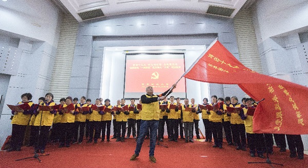 随后,孙金娣书记作十九大精神宣讲。她详细介绍了参加十九大的所见、所想、所闻,并结合工作经历分享了如何把学习贯彻党的十九大精神落到实处的心得体会。她指出,以提升群众满意度为标尺,才是真正的为人民服务。党的十九大报告提出的建立共建共治共享的社会治理格局,是完善党委领导、社会协同与公众参与这一社会治理模式的前提,只有努力把每个基层党组织都建设成宣传贯彻党的决定的主体,团结动员群众、推动改革发展的坚强战斗堡垒,才能与基层党员群众一起共建共享美好幸福的生活。
