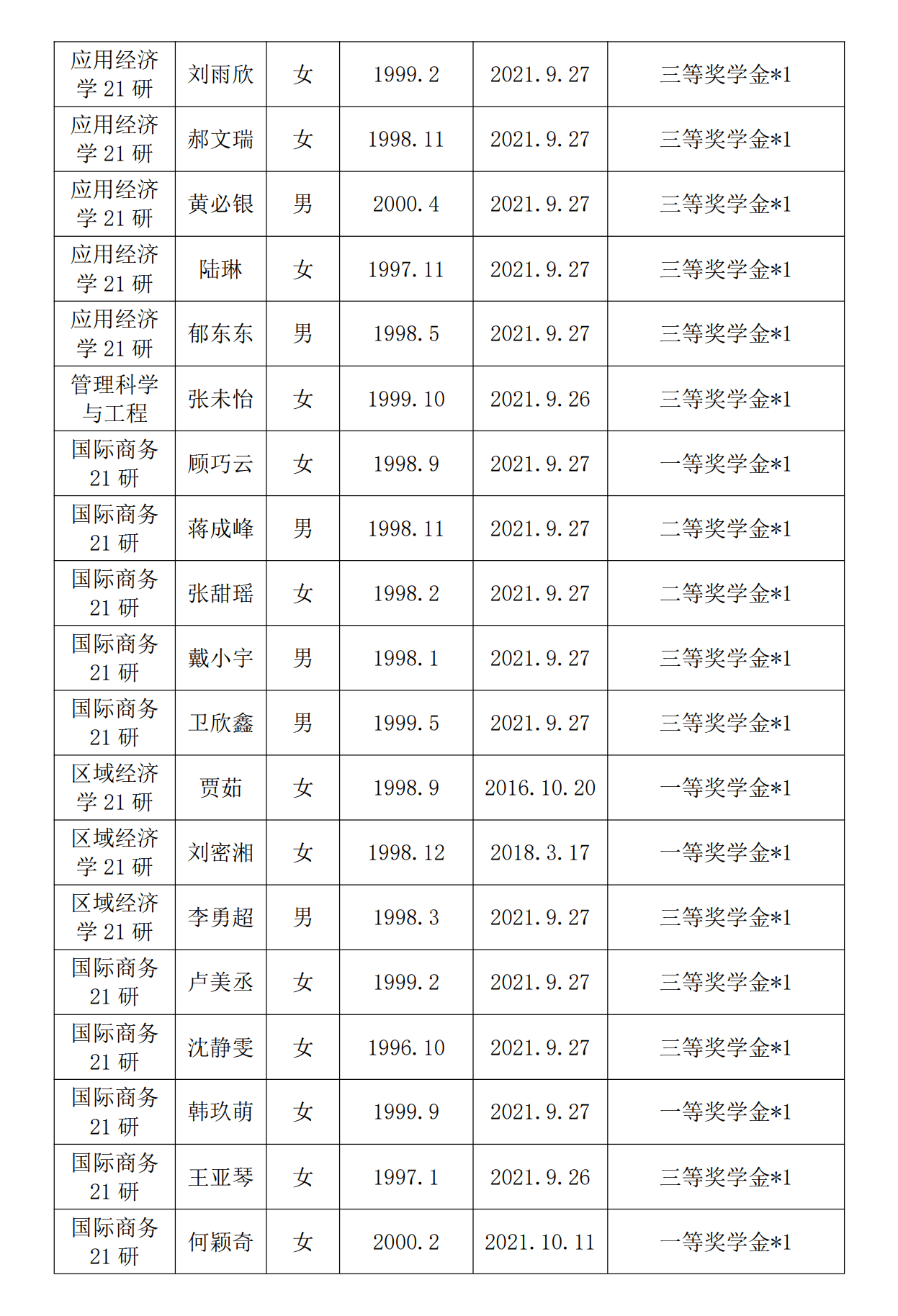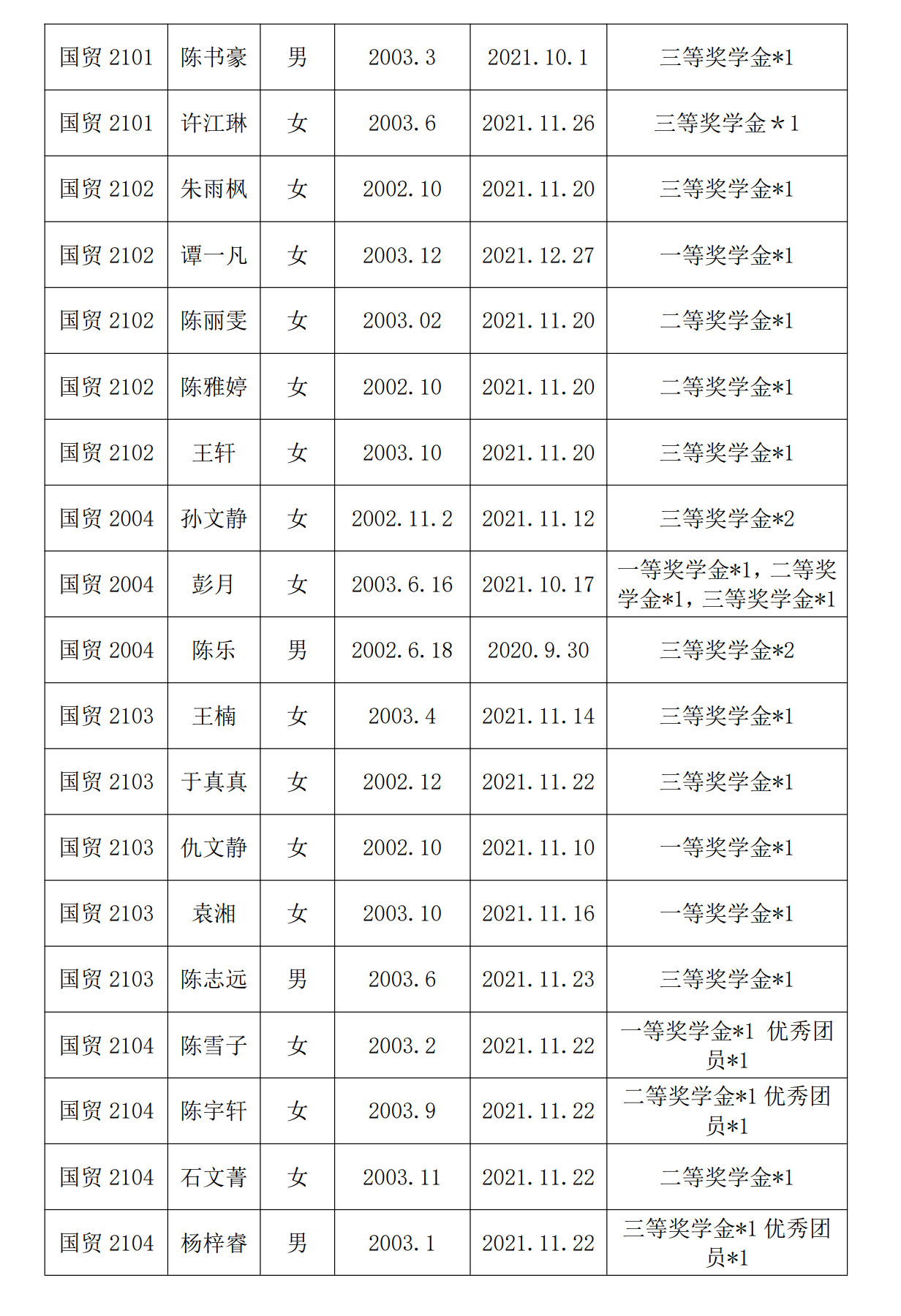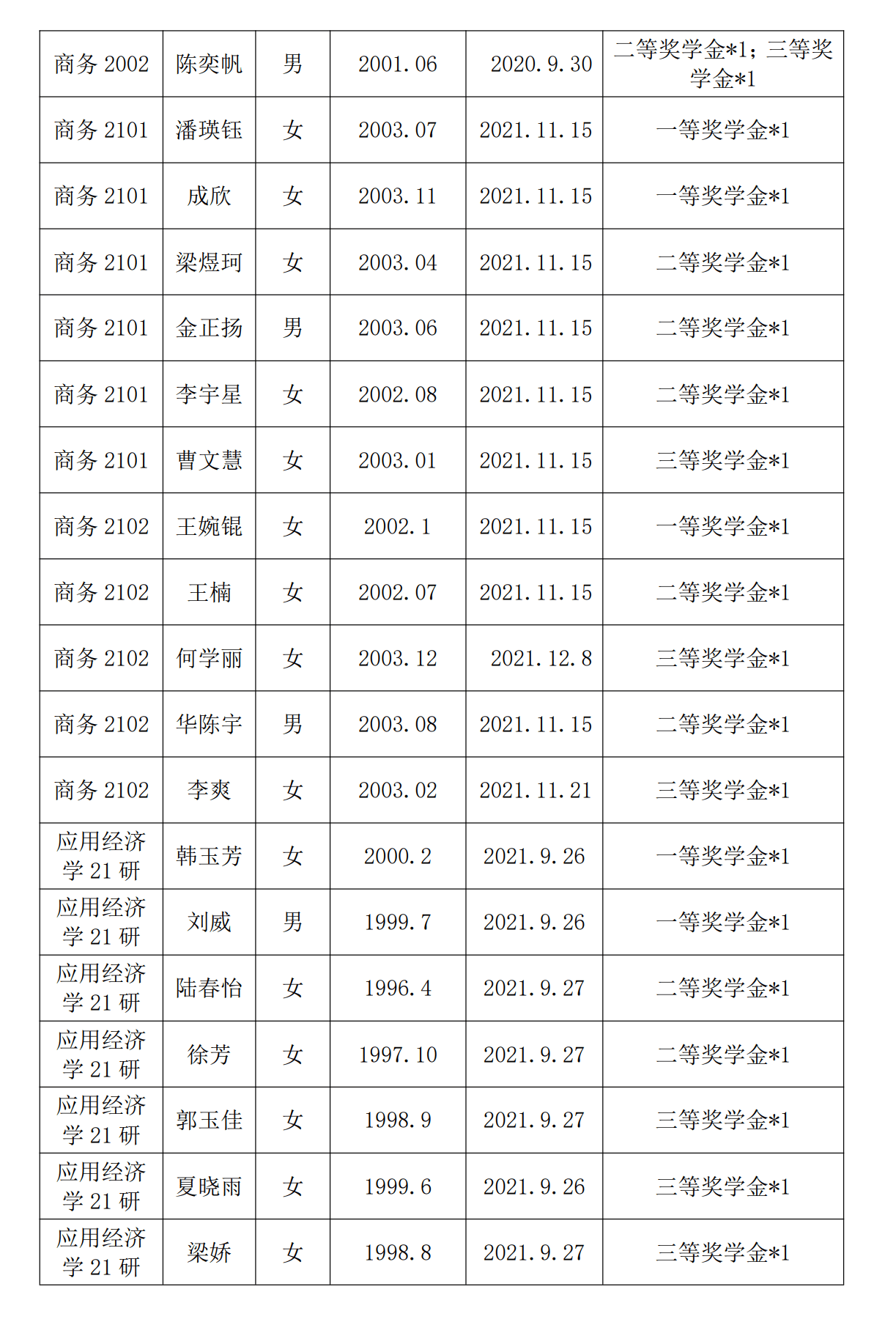 91吃瓜网 2021-2022年第一学期奖学金公示