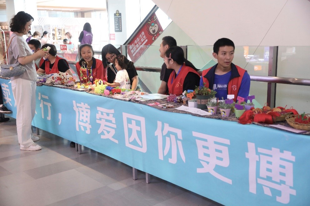 下午两点,义卖活动正式开始,制作用心的工艺品很快吸引到了很多顾客,志愿者和学员们一道,热情地向来往的顾客介绍工艺品的制作工艺,推销精美的义卖品。在志愿者与学员们的推销下,越来越多的人被吸引,主动到摊位上挑选商品。在言谈交流中,顾客们体会博爱之家学员们的辛勤与努力,大家都深感动容,纷纷表示自己愿意尽自己的一份力帮助学员们,买下了义卖品。每当一份义卖品卖出,学员和志愿者们的脸上的自豪都更添一份,阳光洒在每个人的身上,想必在学员们心中也种下光的种子,因为在这片土地,他们用劳动赢得收入,获得关怀和欣赏,这个世界充满光明。