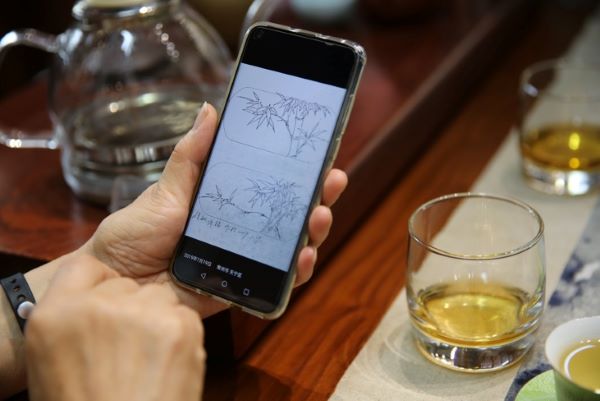 (图为丁竹为徐敏提供的竹刻画稿 周佳茹摄)