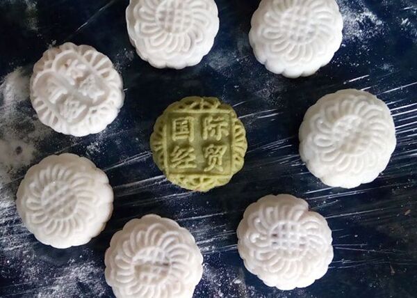 (印有“国际经贸”的月饼)
