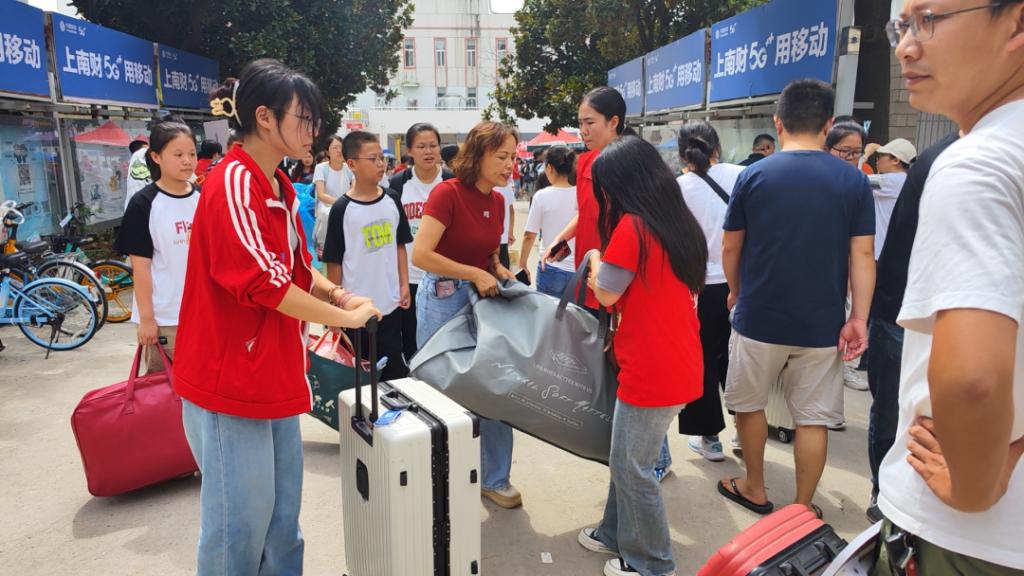 的志愿者们便穿着统一的服装,热情地迎接着入学的新生们。他们戴着笑容,手持标识牌,或站在各个报道点附近,引导新生们到指定的位置报到;或帮助新生们搬运行李,送至对应的宿管站;或在一楼大厅,帮助新生报到登记......国贸2303王振宇同学不禁感叹道:“这是我第一次离家,志愿者们的全力帮助让我感受到了91吃瓜网