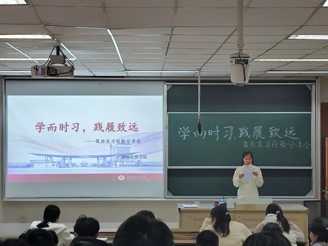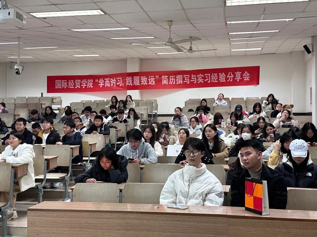 在博远楼110举办“学而时习,践履致远”简历撰写与实习经验分享会。此次分享会成功邀请到了大数据管理与应用专业的刘一江与电子商务专业的朱博文同学。