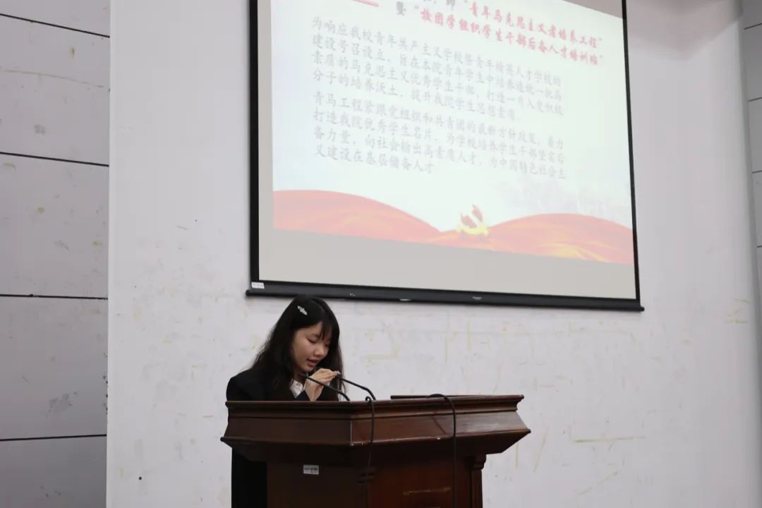 本次会议的主持人商务2201黄彬彦为青马班成员介绍青马工程的培养目标和学院青马班的课程体系、主要任务和考核要求。