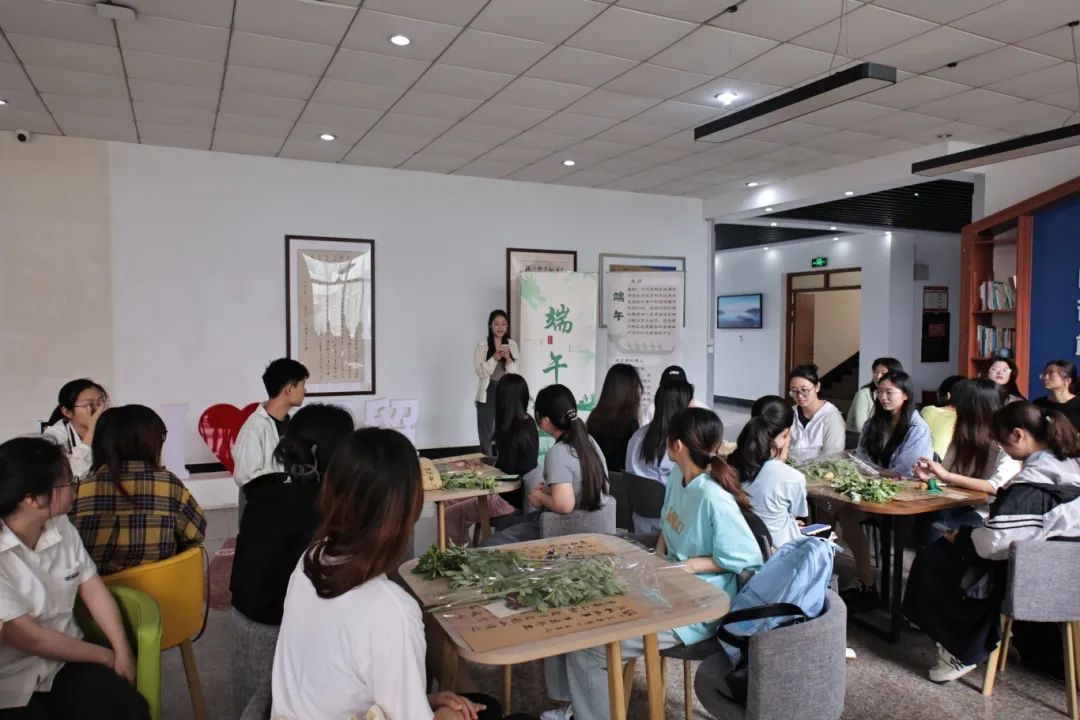 在德经楼三楼阅读角举办“端午情长,艾意浓浓”主题活动,以诗歌赏析与制作艾束的形式,迎端午、祈好运。