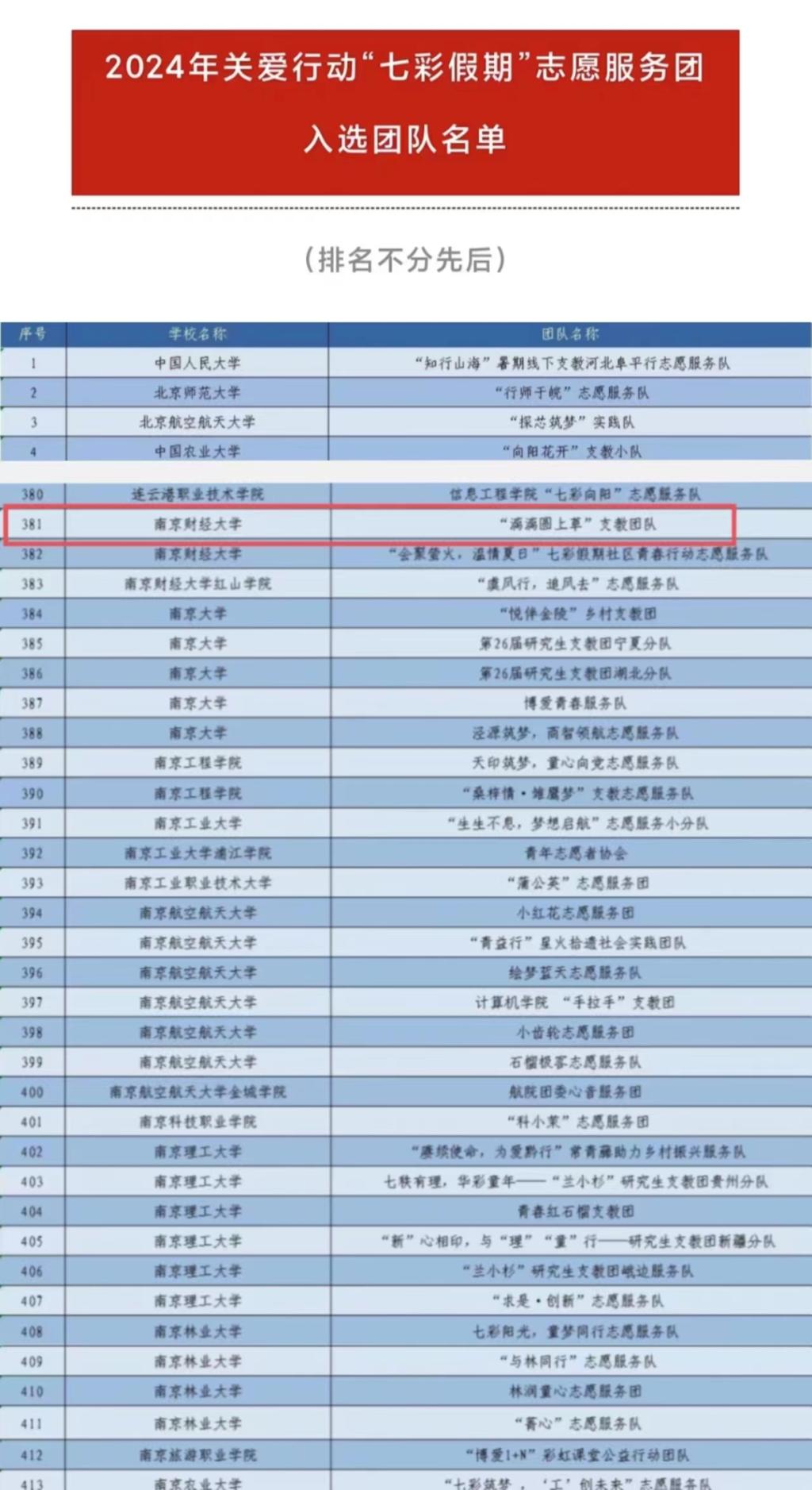 “漓漓圆上草”支教团队成功入选2024年关爱行动“七彩假期”志愿服务团。
