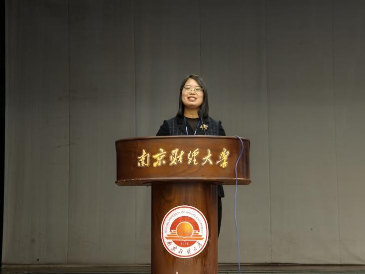 大会在饱含激情的《南财大之歌》后进入了第二阶段。为了提升新生对诈骗手段的防范能力,确保他们的个人权益不受侵害,学院邀请了优秀校友陈方丽进行反诈宣传,科普各类诈骗的形式,并分享实用的应对措施,助力同学们提升防范诈骗的能力,确保个人权益得到周全保护。