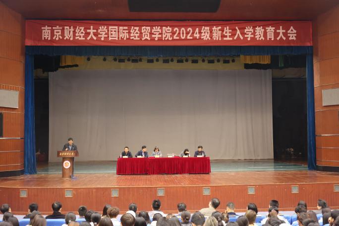 2024级新生入学教育大会在仙林校区大学生活动中心一楼礼堂隆重举行。全体院领导、教师代表、校友代表、新生辅导员及2024级新生参加了此次大会。大会由院党委副书记周进进主持。