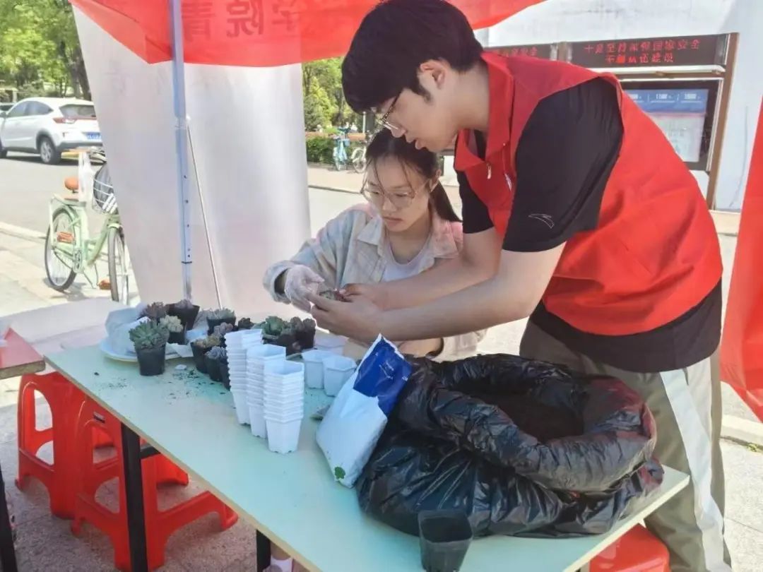 青志部于4月18日在中苑食堂门口开展了“共种地球梦,共享生态美”主题志愿活动。此次活动设置了古法造纸、咖啡渣种植、创意彩绘三个体验项目,分别聚焦“再生利用”、“变废为宝”“减塑生活”三个环保维度,以可感知、可操作的实践形式,打破传统生态文明教育的说教模式,让环保理念真正融入同学们的生活。