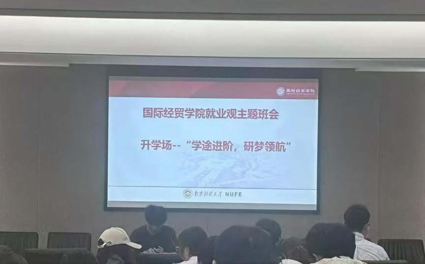 于5 月 13 日 18:00在德经楼专一308开展了一场别开生面的 “就业观教育” 主题班会。本次活动邀请了顺利升学至国内外顶尖高校的7名优秀毕业生作为主讲嘉宾,助力国贸学子规划考研方向,明晰升学路径。