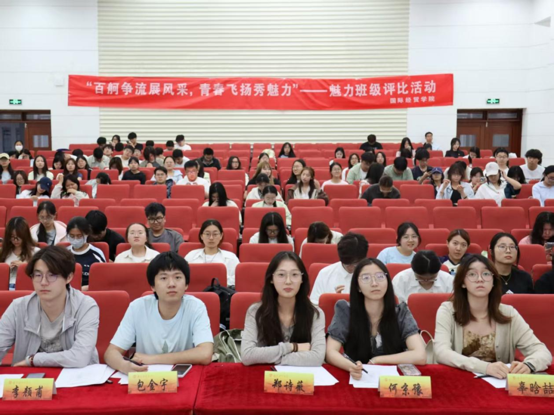 在仙林校区德经楼二楼报告厅举办“百舸争流展风采,青春飞扬秀魅力”魅力班级评比活动,学生会主席辜晗喆、包金宇、郑诗薇,分团委副书记何京豫、李颜甫担任评委,24级各班团支书通过述职汇报与才艺展示诠释班级特色。