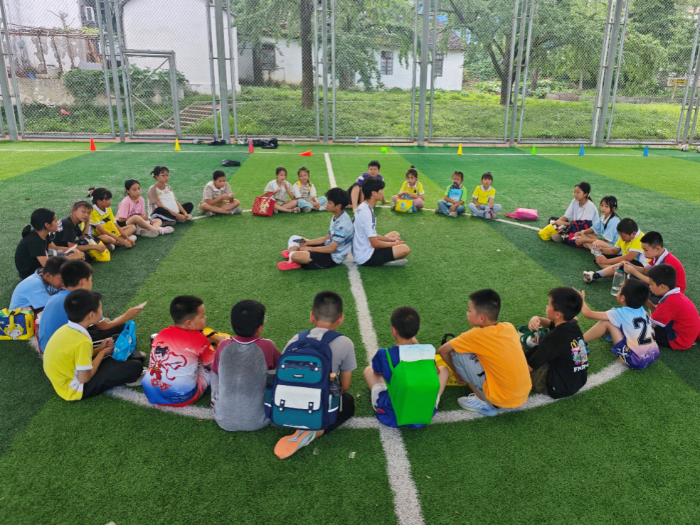 课程接近尾声,孩子们围坐一圈,汗珠在脸上闪着光。支教队员指向群山之外:“将来有一天,你们中也许会有人走出大山,踏入更大的球场,面向更大的舞台,记住今天流的汗、笑的声,足球会一直是你们的好伙伴。”所有学生齐声应和。