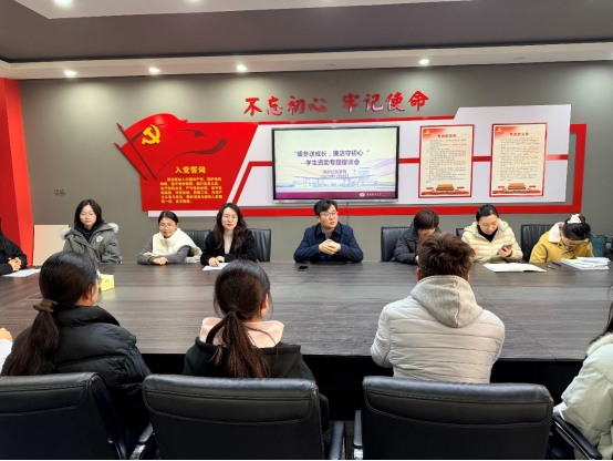 于德经楼206会议室开展“暖冬送成长,廉洁守初心”学生资助专题座谈会,会议旨在通过暖冬补助发放与思想政治教育相结合的方式,传递关怀、深化引领。学院党委副书记周进进、各年级辅导员及受助学生代表参会,会议由朱娟芳老师主持。