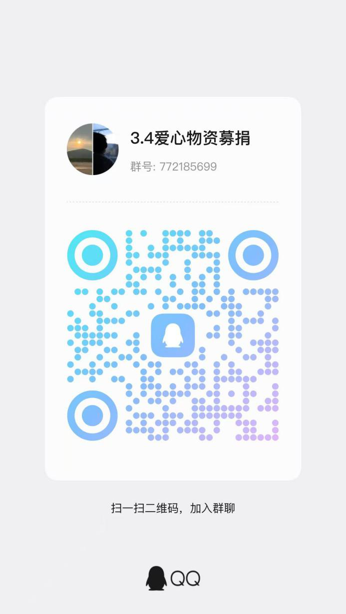 扫描下方二维码或添加QQ群:772185699,了解募捐详情,进群请按班级+姓名备注。
