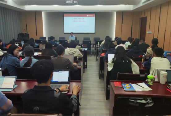 学子开展题为“党建引领下的学术研究”的党课,围绕“为什么学”“学什么”“怎么学”“怎么干”等四个方面,更好地帮助青年学子懂得如何做到“学思想,悟党性”的总体要求。