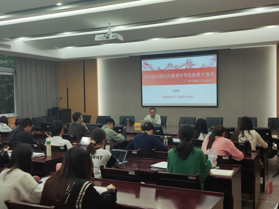 同学尤其是党员发展对象的教育和培养,国际经贸学院分党校于2023年4月28日晚,在仙林校区德经楼308会议室成功举办了2023年上半年“党的发展对象”培训暨国贸学院学习党的二十大报告主题讲座。