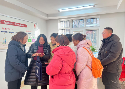 随后,社区工作人员带领学院党员参观社区办公阵地,了解社区5A级居家养老站点运营状况,熟悉基层治理情况,为后续的志愿服务活动做好准备。