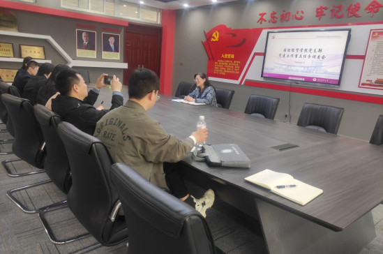 在仙林校区在德经楼206会议室召开党支部党建工作重点任务调度会。学院党委书记周亚芳、组织员刘紫月以及各支部书记、副书记参加了会议。会议由组织员刘紫月主持。