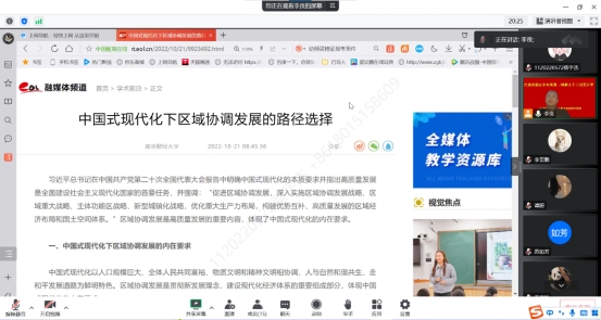 李贲老师首先介绍了党的二十大的基本情况,阐述了党的二十大报告的15个部分,从中选取了“过去五年的工作和新时代十年的伟大变革”“开辟马克思主义中国化时代化新境界”“新时代新征程中国共产党的使命任务”和“加快构建新发展格局,着力推动高质量发展”四个部分进行了详细解读,着重分析了“促进区域协调发展就是深入实施区域协调发展战略、区域重大战略、主体功能区战略、新型城镇化战略,优化重大生产力布局,构建优势互补、高质量发展的区域经济布局和国土空间体系”。李贲老师强调,作为区域经济学的老师和学生,我们可以对这方面进行深入研究,提高理论学习水平和实践服务能力;并带领大家阅读了李贲老师和张为付老师合作发表的《中国式现代化下区域协调发展的路径选择》,以这篇文章与研究生党员们分享了从区域协调发展方面对党的二十大报告的理解。文章主要包括“中国式现代化下区域协调发展的内在要求”“中国式现代化下区域协调发展的新特点”“中国式现代化下区域协调发展的路径选择”三个部分。