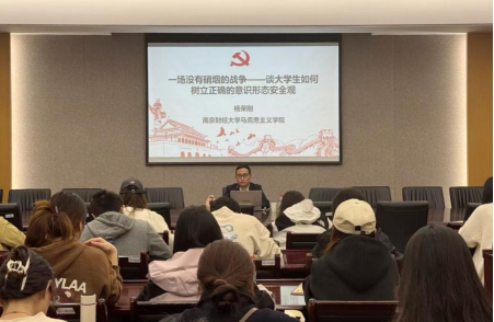 在德经楼308会议室举办专题党课。本次党课邀请马克思主义学院副教授杨荣刚担任主讲。本次党课主题为“一场没有硝烟的战争——谈大学生如何树立正确的意识形态安全观”,旨在增强青年学生对意识形态安全重要性的认识。