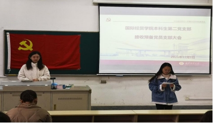 本科生第二党支部在德经楼110召开党员支部大会,讨论接收李浩鑫等2名发展对象为预备党员事宜,支部大会由支部书记唐丽老师主持,政治辅导员宣烨院长全程参与大会并指导工作。