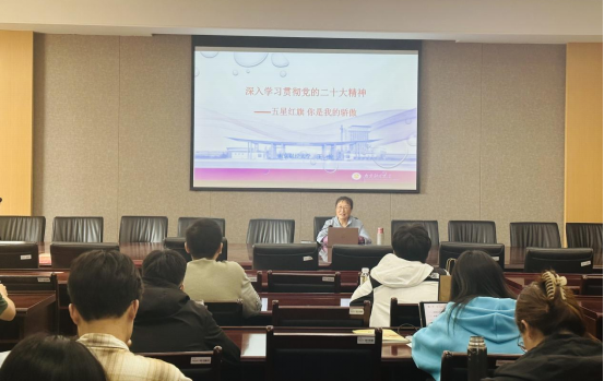 在仙林校区德经楼308会议室举办“五星红旗,你是我的骄傲”专题讲座。讲座邀请我校“五老”讲师团王俭老师主讲。