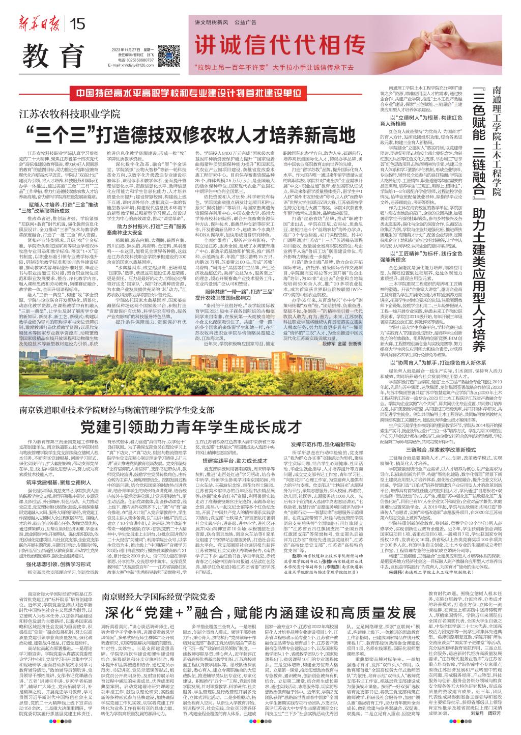 【新华日报2023.11.27教育版】91吃瓜网 91吃瓜网 党委:深化“党建+”融合,赋能内涵建设和高质量发展
