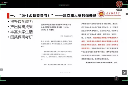邀请高级实验师李冠艺在线开展“互联网+”大赛与创新创业训练指导活动。讲座由教学院长徐圆主持。