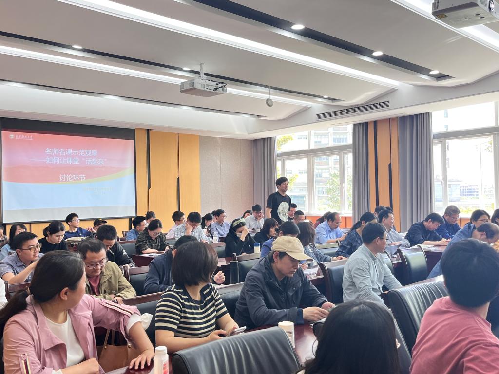 随后,互动讨论环节中,夏秋老师提出自己的疑问,“在课堂上如何消除与00后学生的代沟,来建立更加紧密的师生关系”。夏勇老师分享了自己的收获,要正视与学生之间的差异,正是有这种差异老师和学生之间才能够共促共进、互相成长,老师用自己的学识给予学生更加开阔的视野,成为学生的引路人。此外,张少辉老师也分享了自己的困惑,“面对学生各方面的差异,如何更好地把握课堂的进度”。原小能老师分享了自己的经验,教师要引导学生学会自主学习,不断培养自主意识,再进行适当指导。